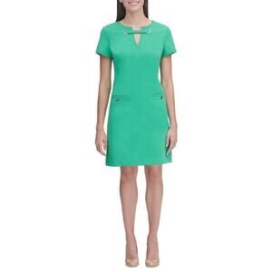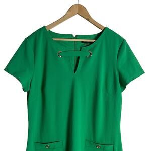 Tommy Hilfiger Kelly Green Short Sleeve Grommet Split Neck Sheath Dress Size 14