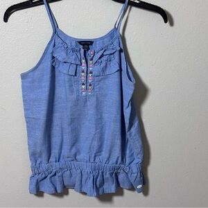 Slightly used excellent condition. Smoke free home. No issues. Denim blue blouse girls size L (12/14) Tommy Hilfiger.