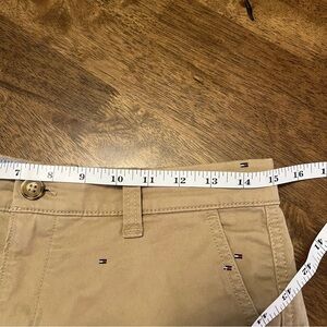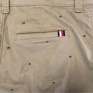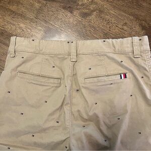 Tommy hilfiger chino khaki shorts with embroidered logo flags.