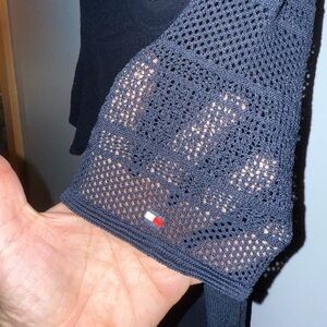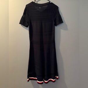 Tommy Hilfiger Knit Midi Dress with Striped Hem Womens Sz M Netted Short Sleeves