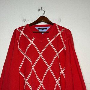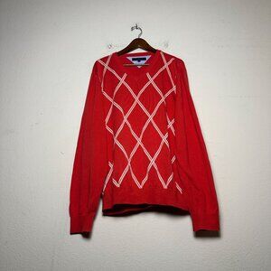 Tommy Hilfiger Knit Striped Pattern Sweater Men XL Red Christmas Winter Cozy