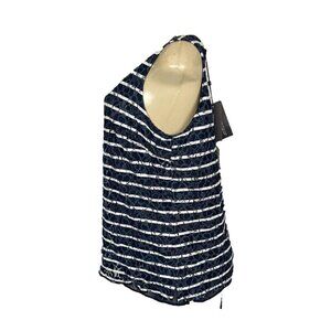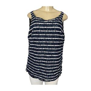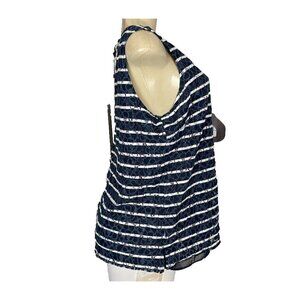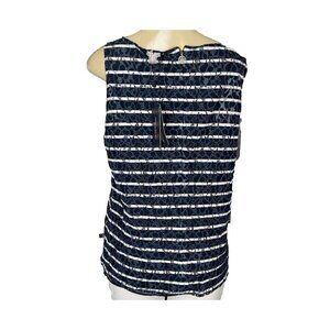 Tommy Hilfiger L Navy Blue Sheer Floral Striped Lined Zip Back Sleeveless Top