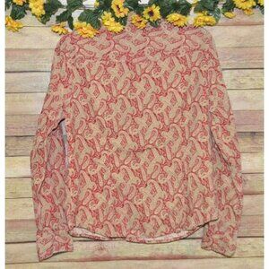 Tommy Hilfiger Ladies L Red Gold Paisley Pearl Snap Shirt Size L Holiday Western