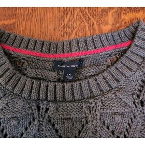 Tommy Hilfiger Ladies Large Sweater Diamond Stitch NWOT Gray. 100% Cotton Beautiful diamond Stitch pattern. Pictures look tan, but is a lovely gray color. Long sleeve pull-over. So soft and comfy. Get ready for Fall and Winter.