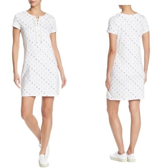 Tommy Hilfiger Lana Nautical Navy Anchor Lace-Up Shirt Dress White Blue, Size M