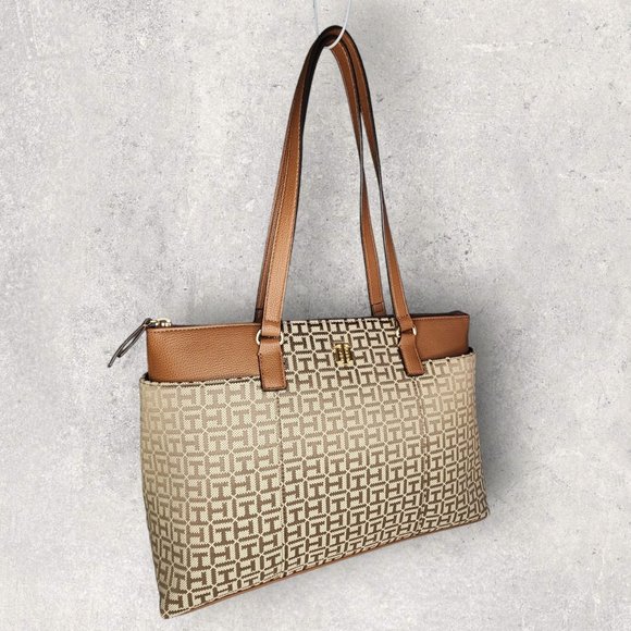 Tommy Hilfiger Large Beige/Brown Tonal Jacquard Tote - NWT