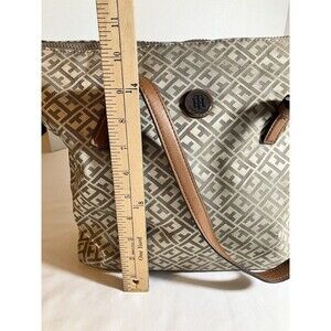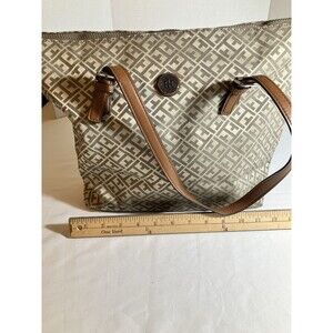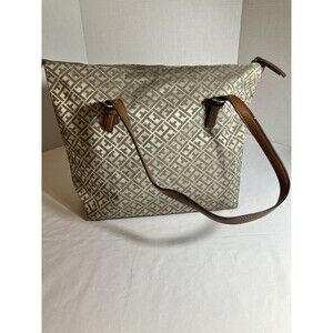 Tommy Hilfiger Large Logo All Over Print Tan Tone Shoulder Tote Bag Purse