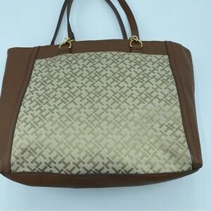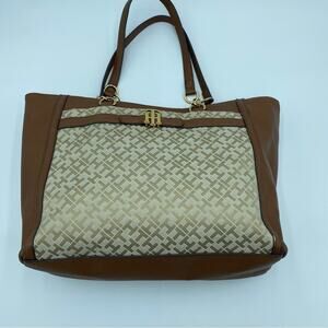 Tommy Hilfiger Large Tote Purse Handbag Gold Chain Accents-Brown