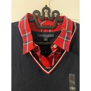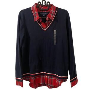 Tommy Hilfiger Layered Navy Sweater / Red Plaid Flannel Size Large