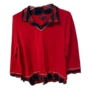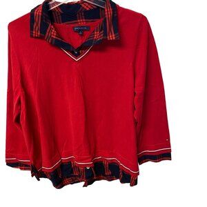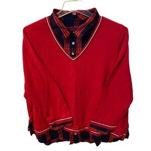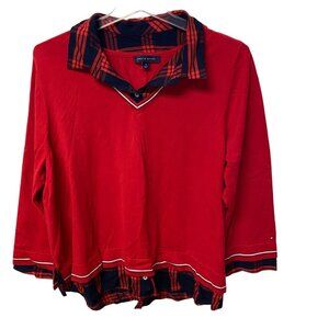 Tommy Hilfiger Layered-Look Sweater printed woven collar top 2X