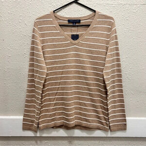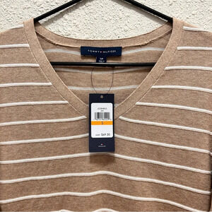Tommy Hilfiger Light Brown V-Neck Long Sleeve Striped Top NWT Small