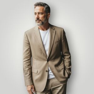 Tommy Hilfiger Linen Blend Beige Sport Coat Suit Jacket Blazer - 46L