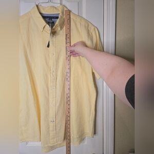Tommy Hilfiger Linen Blend Yellow Short Sleeve Button-Up Shirt Size XL