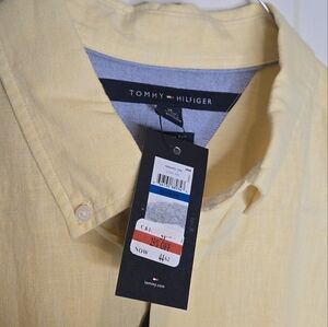 NEW with tags Tommy Hilfiger Yellow Short Sleeve Linen Blend Button-Up Shirt.