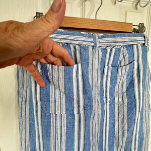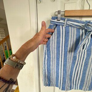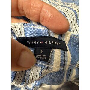 Tommy Hilfiger Linen Mini Skirt Blue White Stripe Coastal Preppy Nautical Size 8 - Pockets - In excellent preowned condition.