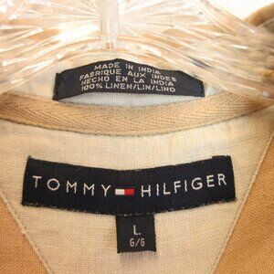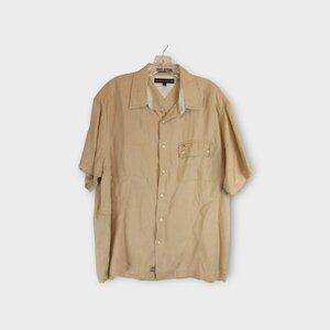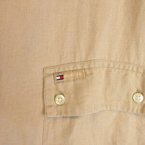 Tommy Hilfiger Linen Short Sleeve Casual Button Down Shirt Size L Tan