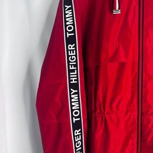 Tommy Hilfiger Logo Red Hooded Drawstring Waist Windbreaker Full Zip Size XL