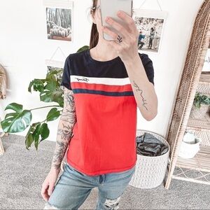 Super cute shirt sleeve tee. Tommy him figure flag / logo style design. Great for a Y2K outfit!