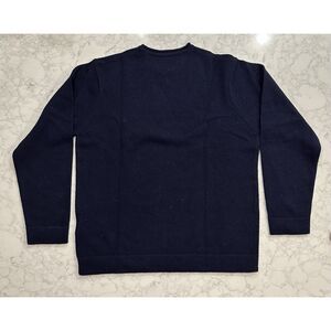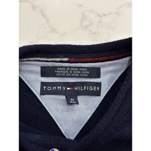 Tommy Hilfiger Logo Stripe Crewneck Sweater 100% Lambswool Wool Navy Size Medium