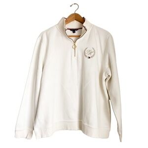 Tommy Hilfiger Logo White Pullover Crew Neck Sweatshirt Popover Zip Preppy XXL