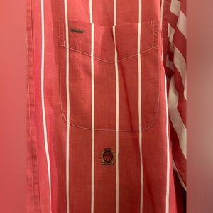 Tommy Hilfiger Long Sleeve Button Down Shirt Mens Medium Red Stripes