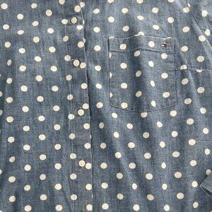 Tommy Hilfiger Long Sleeve Button UP Chambray Blue & Polka Dots XXL