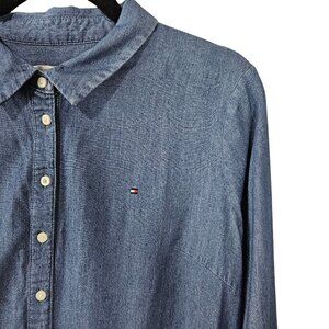 Tommy Hilfiger Long Sleeve Chambray Button Front Knee Length Shirt Dress Size 14
