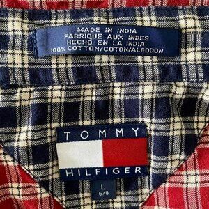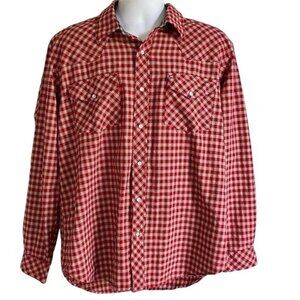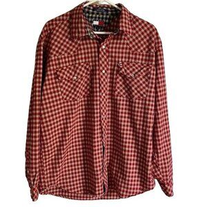 Tommy Hilfiger Long Sleeve Pearl Button Snap Shirt Red White Size Large