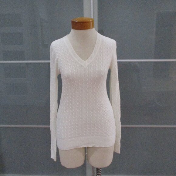 Tommy Hilfiger Long Sleeve Lightweight Sweater V-Neck Cable Knit Size S Excellent Condition