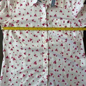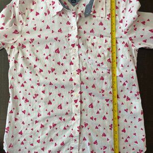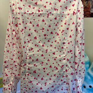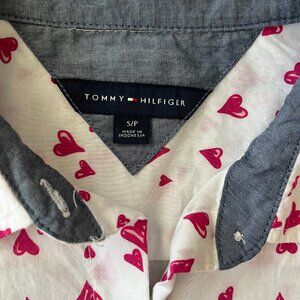 Tommy Hilfiger Long Sleeved White Button Down Shirt with Pink Hearts Size Small