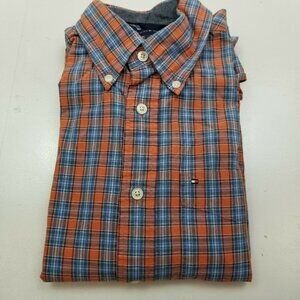 Tommy Hilfiger Long-Sleeve Button Down Shirt Color: Orange & Blue Size Small