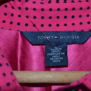 Tommy Hilfiger M Lined Button Front Black Pink Polka Dot Sleeveless Dress