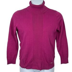 Tommy Hilfiger Magenta Turtleneck Sweater Button Cuff Size L Retro