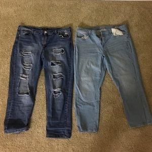 Two jeans for the price of one! Can't go wrong with that. The light jeans are from Tommy Hilfger and they are a size 16. Perfect condition only worn once (my waist is too small now) the darker jeans are the same size as well (16) and they are from Forever 21 Plus Size. Great condition does not look worn. Feel free to ask questions
