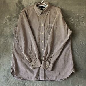 Tommy Hilfiger Men Button Down Shirt XL 80’s Two Ply Cotton Gingham Long Sleeve