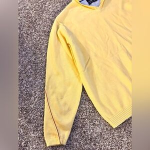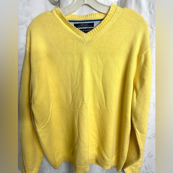 Tommy Hilfiger Men Classic Long Sleeves Yellow 100% Cotton V-Neck Sweater Large