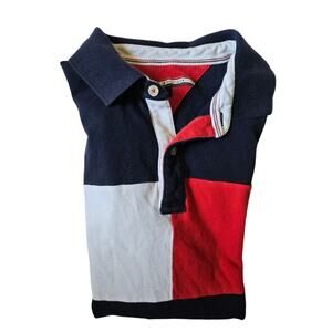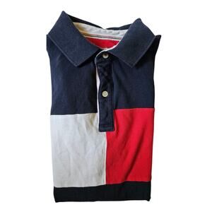 Tommy Hilfiger Men Color Block Blue Red Polo Shirt Size Medium