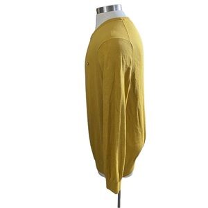 Tommy Hilfiger Men Mustard Knit 100% Cotton Crew Neck Sweater Sz XXL Flag Logo