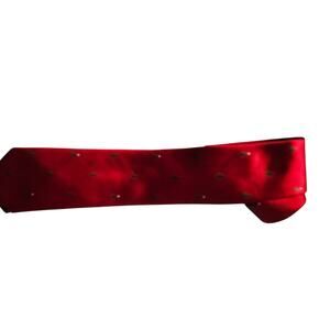 Tommy Hilfiger Men Red 100% Silk Holiday Tie Christmas Tree Print