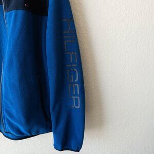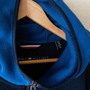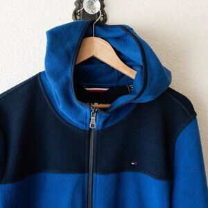 Tommy Hilfiger Men Sz Medium Blue Black Colorblock Fleece Full Zip Hooded Jacket