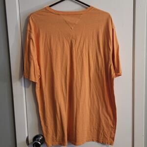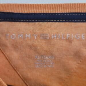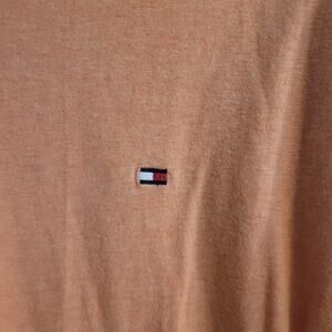 Tommy Hilfiger Men XL V Neck Logo Tee Shirt Orange Rust Brown Minimalist Casual