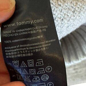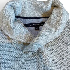 Tommy Hilfiger men’s 100 % cotton grey chunky knit sweater size Large shawl neck