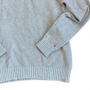 Tommy Hilfiger Men's 100% Cotton Grey Chunky Knit Sweater size Large Shawl Neck