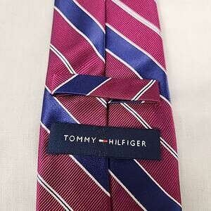 Tommy Hilfiger Men’s 100% Silk Repp Tie Necktie Red Navy Blue&White Stripes USA