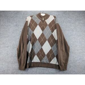 Tommy Hilfiger Mens 1/4 Zip Diamond Argyle Sweater Size XXL Brown