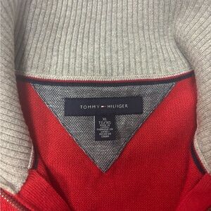 Tommy Hilfiger Men’s 1/4 Zip Sweater XL Red Navy Gray Striped Pullover