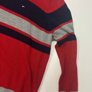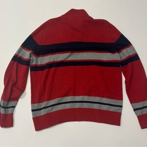 Tommy Hilfiger Men’s 1/4 Zip Sweater XL Red Navy Gray Striped Pullover