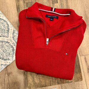 Tommy Hilfiger Men's 1/4-Zip Pullover Sweater (Red, All-Cotton, Size M)