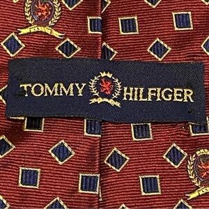 Tommy Hilfiger Men's 57” Necktie 100% Silk Maroon Foulard Pattern USA