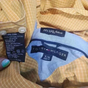 This vintage-inspired Tommy Hilfiger shirt is perfect for casual occasions. The gold plaid pattern gives it a classic 80s vibe, while the button-down collar and button-up closure make it a versatile addition to any wardrobe. The shirt is made from cotton and features long sleeves, making it suitable for all seasons.